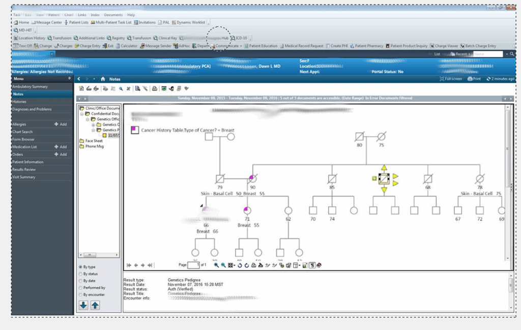 Progeny can transmit a patient’s pedigree image or PDF into your electronic health record, so you can stop simply making “notes” on a patient’s family history. By embedding the pedigree into the EHR, providers gain comprehensive access to patient genetic and family history information, which supports better care coordination, regulatory compliance, more efficient healthcare delivery, and allows for visibility for those who do not have access to Progeny. EHR integration is available for an additional fee.