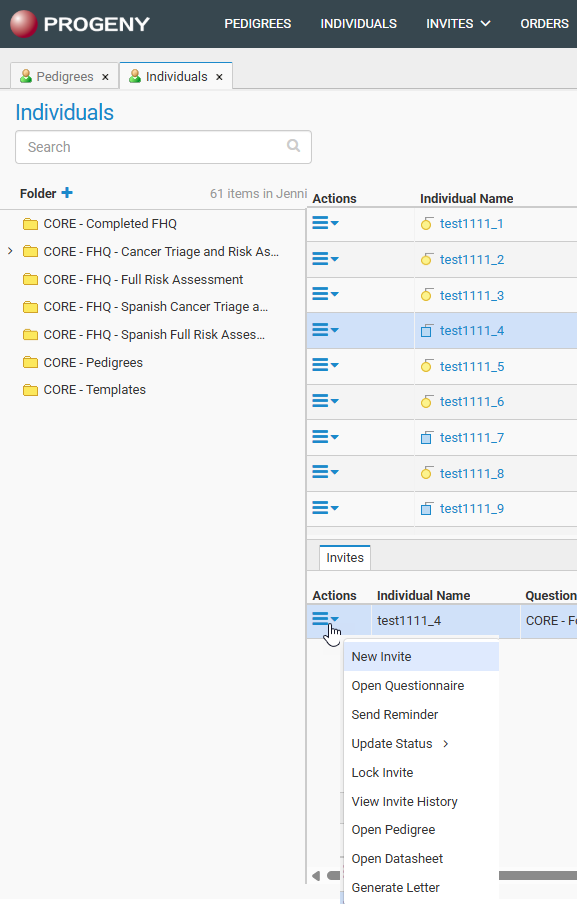 Individuals Action Menu (Individual that is within a pedigree)