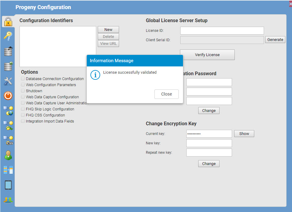 - Enter the configuration credentials. Please contact Progeny Support if you do not have this information.