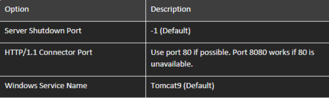 1. On the Apache Tomcat Setup: Configuration Options window, configure the following then click Next to continue: