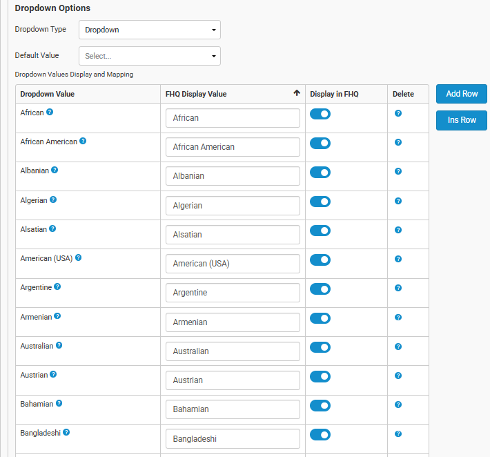 - Display in FHQ: Able to configure whether a specific dropdown option is displayed in the FHQ or not