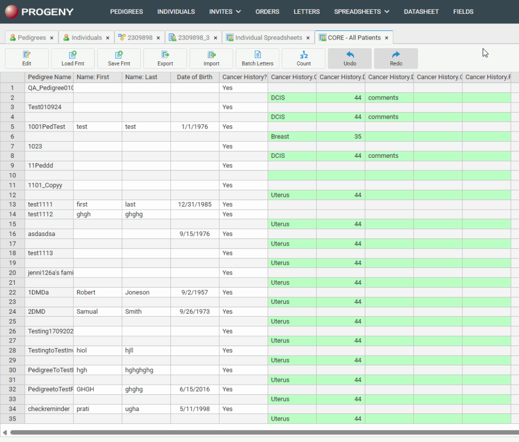 - Count – counts all the individuals, pedigrees, or samples (depending on the selected type) in the spreadsheet