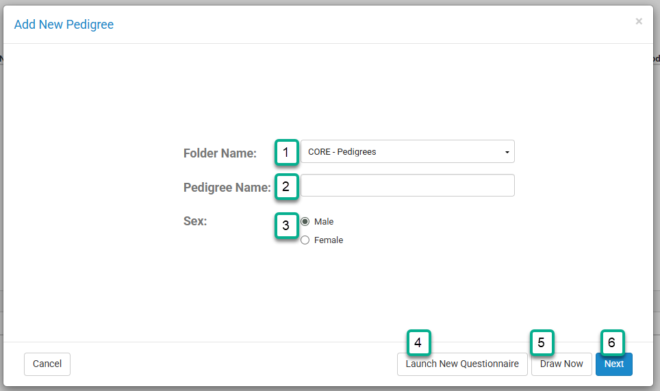 To create a Pedigree from the Progeny Web Interface, select the Pedigrees module, then click the New Pedigree button in the upper right corner of the screen.